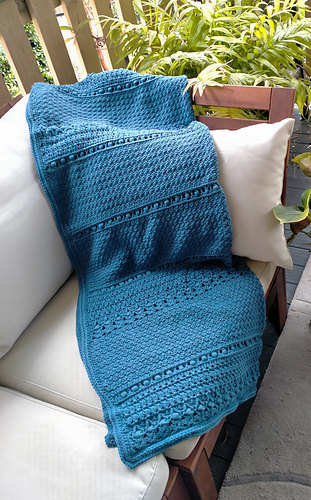 -This blanket is worked in 2 separate pieces and then sewed together so that the pattern on both ends of the blanket is the same.