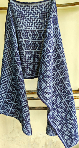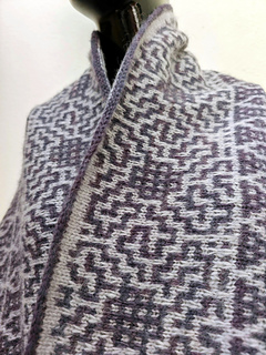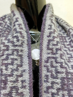I used two skeins each of Dusk and Quicksilver for the wrap.