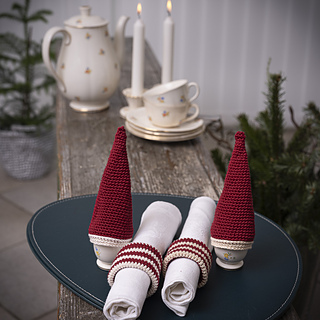Kegleformede æggevarmere & servietringe – hæklet julesæt