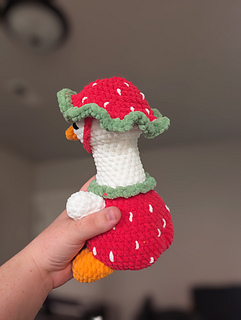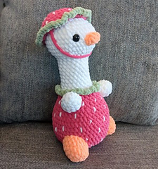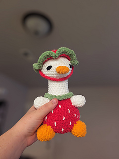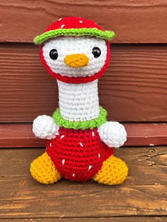 This sweet and quirky pattern features a charming goose with a strawberry-inspired body and a leafy berry hat! Perfect for amigurumi lovers, this project requires basic sewing skills for assembly. A fun and fruity twist on a classic goose plushie! perfect for any spring market or personal collection.