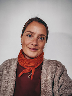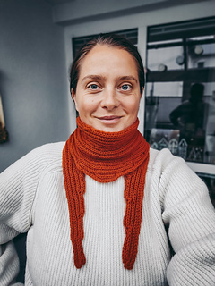 MYSIG is worked back and forth in one piece in brioche stitch and has built in i-cord edges. The increases and decreases create