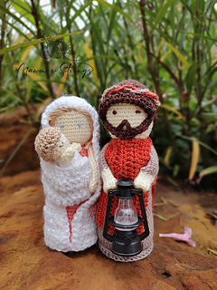This handmade collection is unique since the figures were designed by the seller and are made with vibrant materials. The set does not contain any beads or plastic eyes that could be a choking hazard. Approximately 6 inches/ 15 cm in height. Easy to set up and store. The figures are free-standing and can be displayed in a stable or as a standalone. Your family will look forward to displaying this Nativity scene every Christmas. The collection includes: Mary holding baby Jesus, Joseph with a lantern