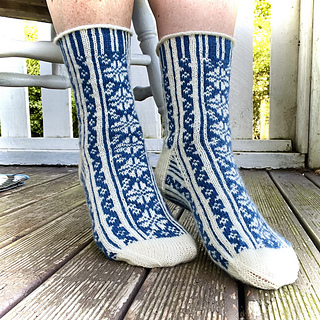The socks are worked from the cuff down with a heel flap and gusset decrease.