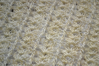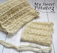 This crochet pattern comes with complete instructions for this very elegant and lacy scallop and cables bonnet and coordinating wrap. The bonnet has ties that can be tied under the chin. The bonnet is made in a very open and lacy stitch to add a delicate look to it. The wrap is made with the same stitches and is large enough to use as a cover or to wrap the newborn in it. The bonnet is for newborns only. I used a mohair yarn, you can use any yarn as long as it is #2 weight and you match the gauge.
