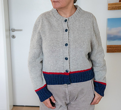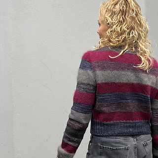 The fun thing about No Rules Cardigan is that it can be knitted with many colours randomly placed, or if you prefer, you can simply use 2 or 3 colours and structure the stripes in a more ordered way.