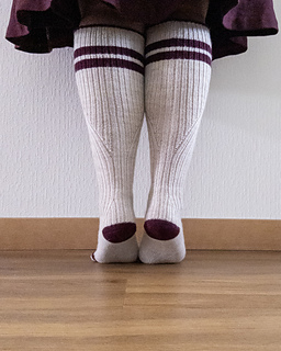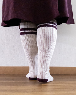 100g (400 m) of fingering-weight sock yarn is sufficient for all sizes. For the knee-high version, plan