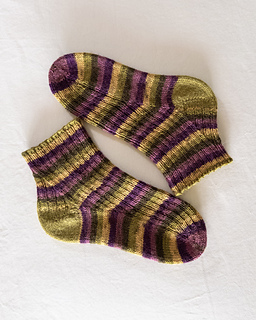 The Nyquist Socks are worked toe-up in a simple 2x1 rib, beginning right at the toe. The double gusset ensures a comfortable, well-balanced fit.