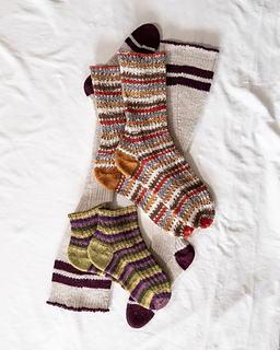 The socks can be made to any length, from shorties to retro knee-highs, helping you make the most of your yarn.