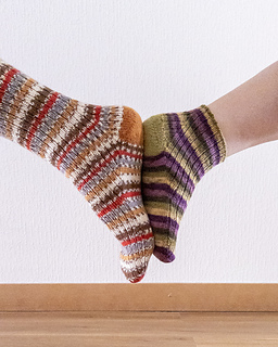 Mostly worked in the round with an afterthought heel turn, they are perfect for relaxed, travel, or social knitting, letting you enjoy easy rounds now and turn the heel later.