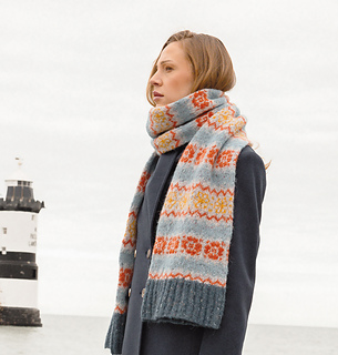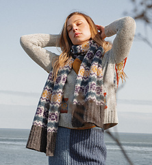 Scarf is worked in the round to create a double thickness. You will need a set of double pointed needles in both sizes used, or you may choose to work the design in circular needles no longer than 16” (40 cm) for each size.