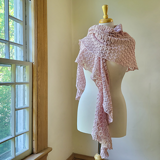 This large crescent shaped shawl can easily be made bigger or smaller by increasing or decreasing the number of repeats for each of 3 sections. Each flows into the next after any number of repeats.