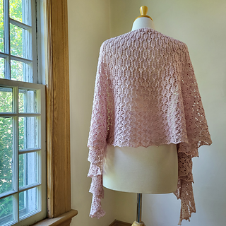 Designed as the June 2025 pattern for Wonderland Yarns/Frabjous Fibers Jane Austin Shawl Club.
