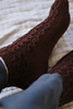 The socks are intended to be worn with 0 – 2 cm / 0 – 0.75” negative ease. Sample shown in size S.