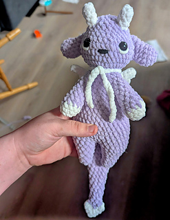 Pip is a cute, baby dragon with the charm of a little goat. Pip features tiny horns, floppy ears, and a pair of small wings. With simple hand-sewn details and a gentle expression, Pip makes a sweet and magical companion for all ages.