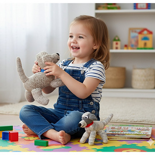 Required: 250g double knitting yarn (use 2 strands together) or super chunky yarn; oddments of blue, black & white for features and collar; stuffing