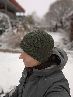 The Polaris Hat is worked seamlessly in the round from the bottom up, starting with a double folded 1/1 ribbing, followed by a structured star pattern, framed with two Vikkel Braids.