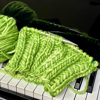 Hat is knit in the round with super bulky yarn. Size can be adjusted by increasing or decreasing cast on by increments of 4 sts.