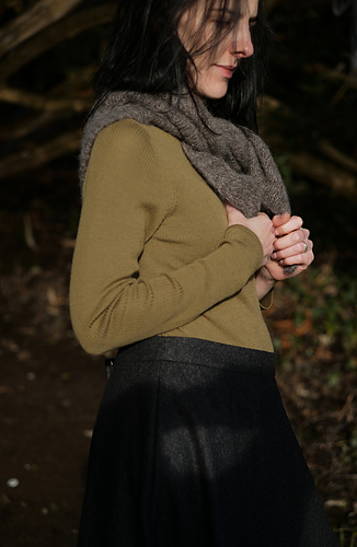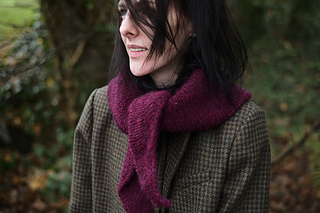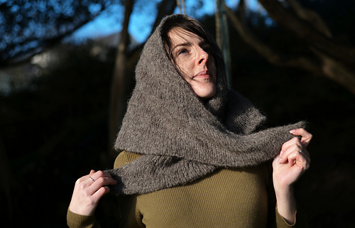 ‘Gauzy’ yarns such as mohair/ silk blends in lace weight are ideal for this, but many other yarns will likewise work. The main criteria is that the yarn needs to be fine enough, so that the fabric does not become too thick or heavy when doubled. Because the shawl is double-faced.