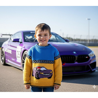Materials: 100g each of blue and yellow (size 26 & 28 may need 200g yellow) Stylecraft Life double knitting and oddments for motif