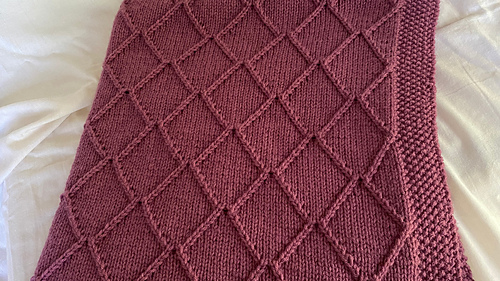 A textured blanket with clean, geometric lines, this pattern will look best knit in a solid or tonal yarn. Due to its simple texture, this pattern is also easily customizable. Make the blanket longer or shorter by adding or omitting rows in groups of 24. Make the blanket wider or narrower by adding or omitting stitches from the center of the blanket in groups of 16.