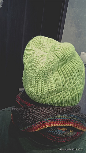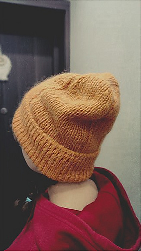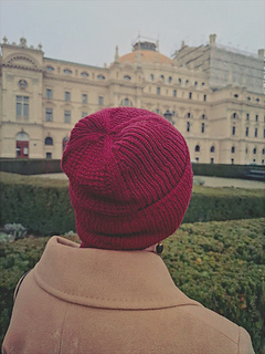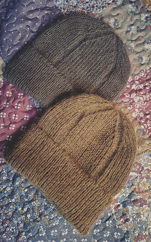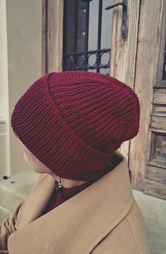 The brim is made using the double knitting method and a 1x1 ribbing.