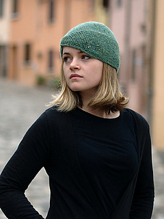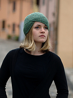 This cloche is alive with texture from the heathered yarn to the moss stitch brim and asymmetry. The construction of this Hat makes for a very interesting knit: beginning with a provisional cast on, stitches are worked onto the textured brim to create a seamless and stylish finish.