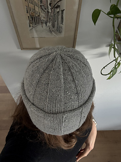 The Rigi 3 Hat is worked from the bottom up in a wide rib pattern composed of 16 radial segments. The ribbing of the triple-folded cuff (thus Rigi 3) flows seamlessly into the rib structure of the upper section. The decreases translate the logic of round-yoke sweaters into a hat construction.