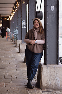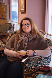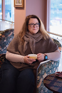 The Rosie Shawl is a large crescent shawl in the style of my other “Family Member” shawls. She was designed when the idea to stripe the knit and purl pattern used in the Rachel shawl in the same way as in Alexander was conceived. Rosie is named after my cousin. She is Alexander’s big sister, so she is definitely related to both Rachel and Alexander!