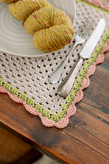A simple and quick to hook project is made fancier with the addition of a pretty striped scallop edge.