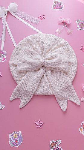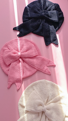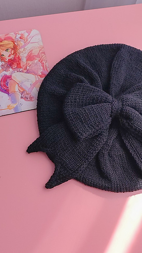 Shoujo is worked from the bottom up in the round, the bow is worked flat and sewn to the beret.