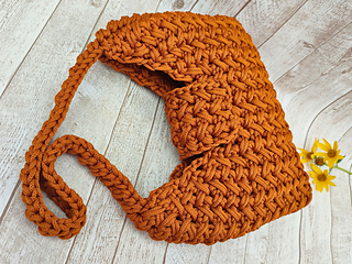 The size of finished bag depends on the yarn and hook size. My bag: