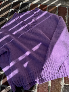 The purple Simi sweater is knit in Onling No 1 in color 40195 Purple glycine