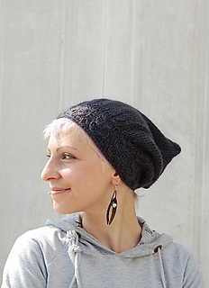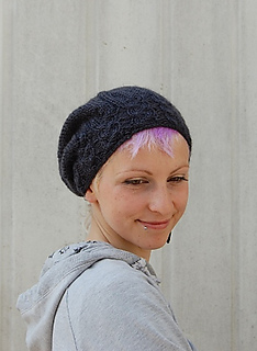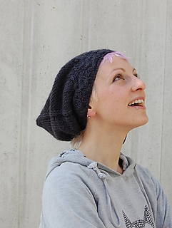 This Hat is knitted top down, and includes a slouchy beret version as well as the slouchy pixie shown here.