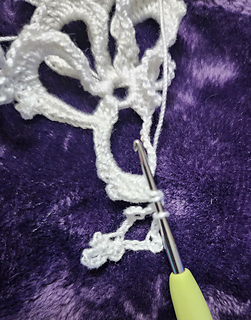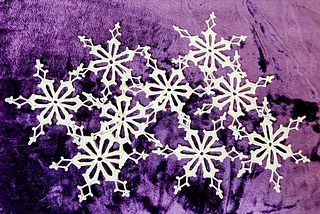 Snowflake Starter is a six-pointed snowflake using a combination of single, half-double, and double crochet stitches as well as chains, slip stitches, and picots.
