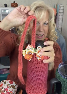 This crochet pattern features simple stitches, a comfortable 34.5-inch crossbody handle, and an optional Fat Pull Tie Bow embellishment that adds a charming touch. It’s the sister design to my Tumbler Wrap Crochet Pattern and coordinates beautifully for a matching set.
