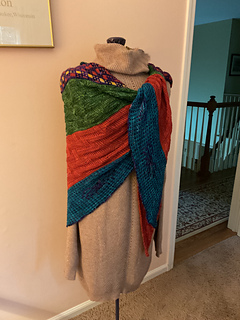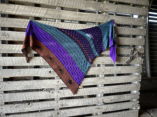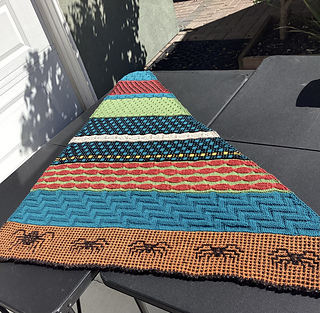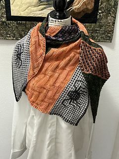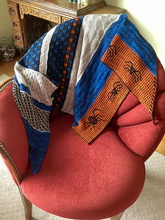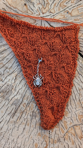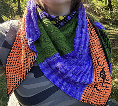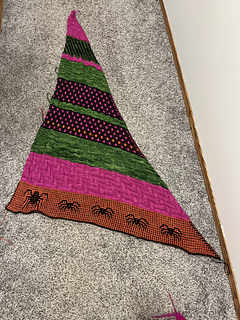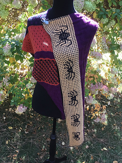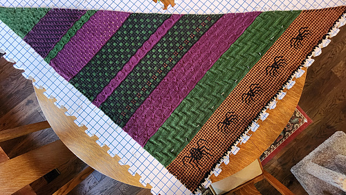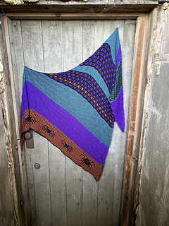 Spiders in the House is a large, FUN, not serious at all, fingering weight asymmetrical spider-themed shawl!
