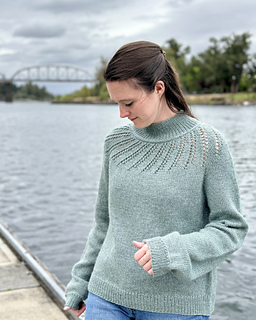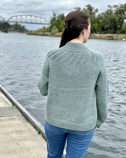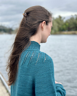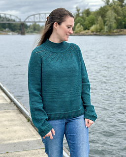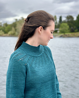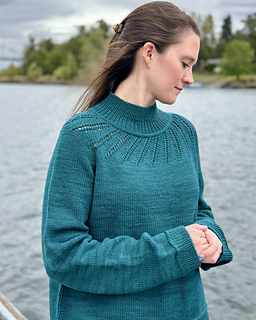 Worked top-down and seamlessly in the round, Starburst lets you try it on as you go, with no surprises, and no finishing beyond weaving in a few ends. The neckline is worked first for built-in structure that prevents stretching, and you can add a collar of your choice later. Short rows shape and lower the front neck, and can also create an optional angled hem with a bit of extra length in the back.