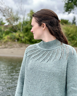 The starburst motif is far easier than it appears, and the hybrid yoke construction gives you the best of both worlds: a circular yoke for effortless textured, lace knitting that transitions into raglan shaping for a comfortable, flattering fit.