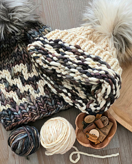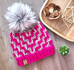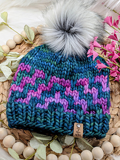 The Step Up Beanie and Headband pattern is a fun, rhythmic knit that is perfect for binge-watching your favorite show! Named for its mosaic step design, it makes a super bulky, cozy beanie and/or headband in stockinette stitch with the opportunity for as much color as you want--go pastel or go bold--have fun with those leftover and partial skeins! Make two beanies in reverse colors from two skeins and still have enough leftover towards a headband. Perfect for market prep and gifting!