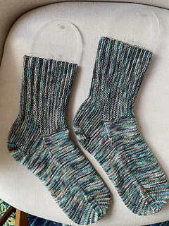 The sock construction starts with working the leg and heel flap sideways, followed by creating the ankle and gusset from the top down, and finally ending with a rounded toe.