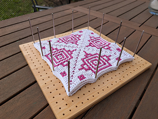 Ein Spannbrett ist hilfreich um alle Grannys vor der Fertigstellung auf die gleiche Größe zu spannen.