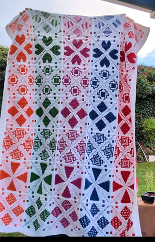 Die Decke ist anfängergeeignet was die Overlay Häkeltechnik angeht.