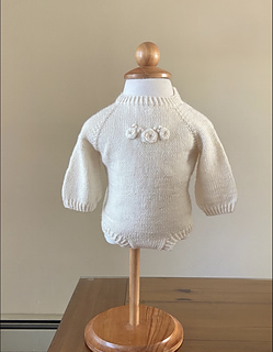 This long sleeved romper is worked with raglan shaping from the top down. We start knitting flat, in order to gain some space for the head and sew a button on the back, but after a few rows the work is joined in the round. Smaller needles are used on the ribs for a better fit.