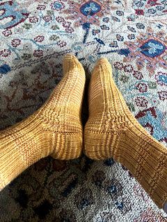 Sunday Reel is a sock pattern worked toe-up. The socks are mostly simple and neat ribbing but feature a special and fun gusset pattern. The instructions are written for magic loop technique on a long circular needle but you can easily work them on dpns.