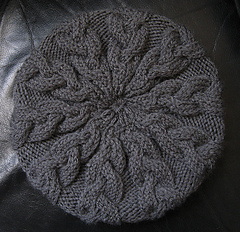 Slouchy braided cable beret knit from the bottom up. Originally intended as a woman’s hat but my kids’ friend Holden ran off with the prototype. Non-slouchy beanie version available here.