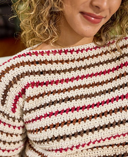 This garment is worked in pieces and seamed. Cut yarn and weave in ends at each stripe.