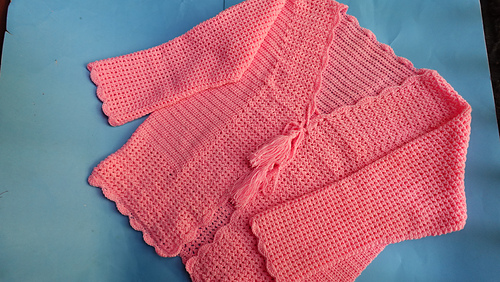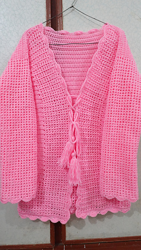 Begin with a foundation chains,The cardigan is crocheted in three main panels together — one back and two front panels —The sleeves are worked directly onto the armholes or made separately and sewn on later. This construction makes the pattern simple and beginner-friendly.