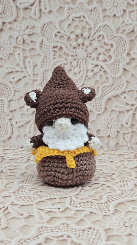 Finished size: approximately 4½” tall with hat. Size depends on what type of yarn and hook you use.