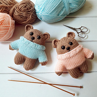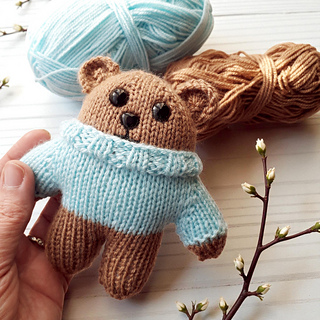 You can use other weights of yarn – thinner yarn will give a smaller toy, thicker yarn a larger toy. Use needles one size smaller than those recommended for your choice of yarn.