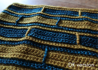 DK weight - RiverKnits Nene DK; 100g/ 225m/ 246yds; 100% British Bluefaced Leicester. Sample used 100g each of shades Erntedank and Sommerlicher Nachthimmel.